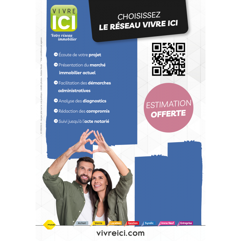 ZONE 2 : Nom de l'agence, adresse et numéro de téléphone Police Montserrat bold- centré - Blanc